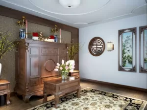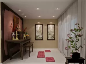 Vách ngăn thạch cao phòng thờ sử dụng decor trang trí và tranh treo tường