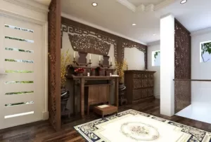 Nếu bạn yêu thích gỗ nhưng không muốn dùng làm vách ngăn sợ cháy thì vách ngăn thạch cao phòng thờ là sự lựa chọn hấp dẫn không thể bỏ qua.